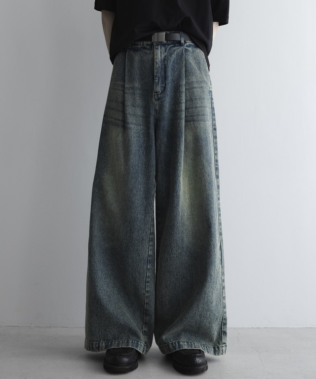 ◼DESIGN Using 100% cotton, 13.5oz classic denim fabric as the base, we carefully applied multiple processes such as washing, overdyeing, and vintage treatment to create a high-quality fabric that combines rich texture with a modern feel. A semi-wide, baggy silhouette that translates the structural beauty of slacks into denim. It offers a relaxed fit while maintaining a beautifully clean line. Its presence makes it the centerpiece of any outfit, and the design also naturally enhances the leg line. This piece blends into everyday life while carrying a quiet individuality. Due to the nature of vintage and wash processing, there may be slight individual differences in the finish, but we take the utmost care to ensure consistency as much as possible. ◼SIZE SPEC SMALL Waist: 79 / Hip: 102 / Rise: 33 / Inseam: 73 / Thigh: 67 / Hem: 64 MEDIUM Waist: 82 / Hip: 105 / Rise: 34 / Inseam: 74 / Thigh: 70 / Hem: 66 LARGE Waist: 85 / Hip: 108 / Rise: 35 / Inseam: 75 / Thigh: 73 / Hem: 68 ◼FABRIC Cotton 100%
