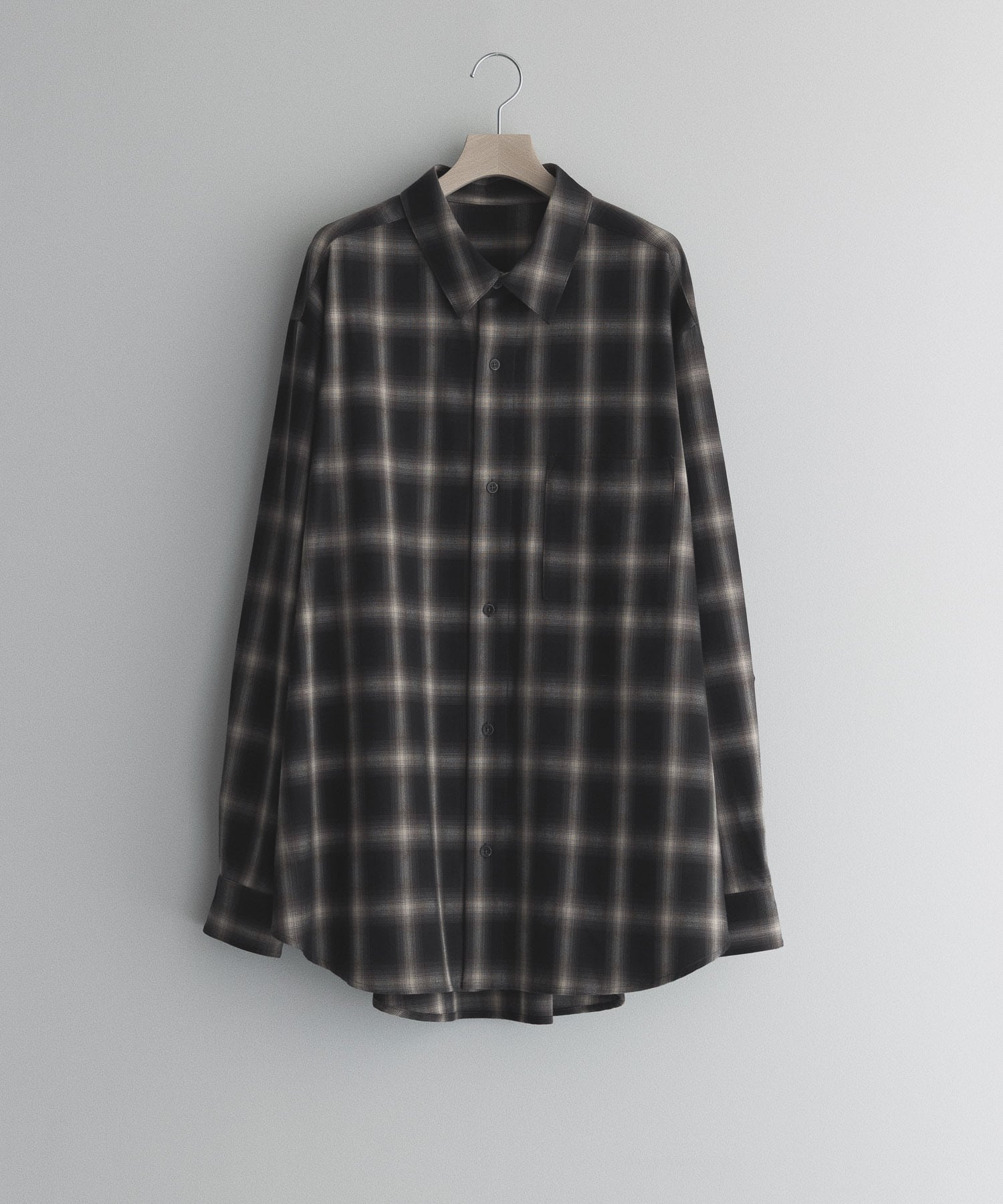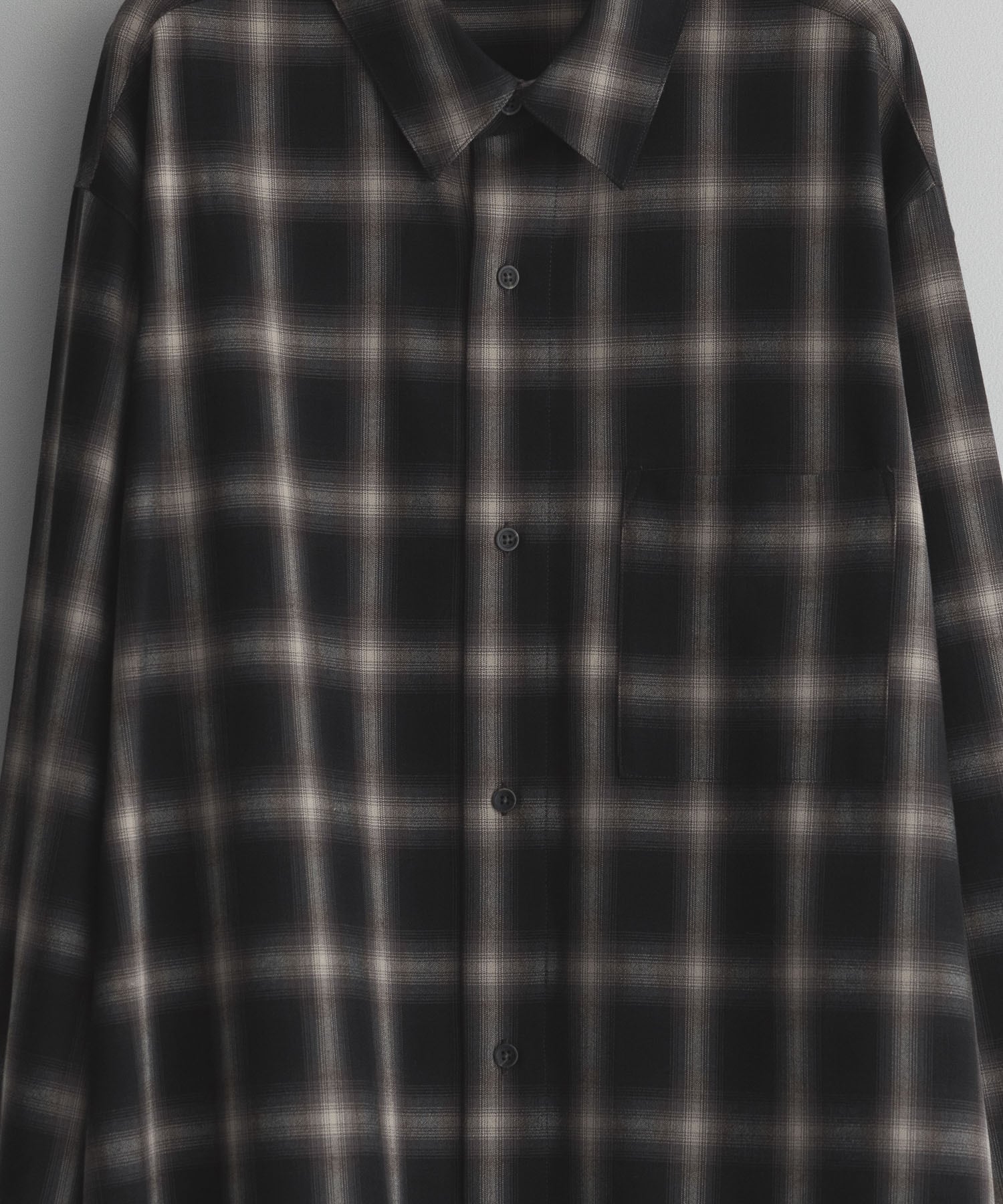 An overshirt crafted in ombré check featuring an abstract pattern with a shadow-like effect.