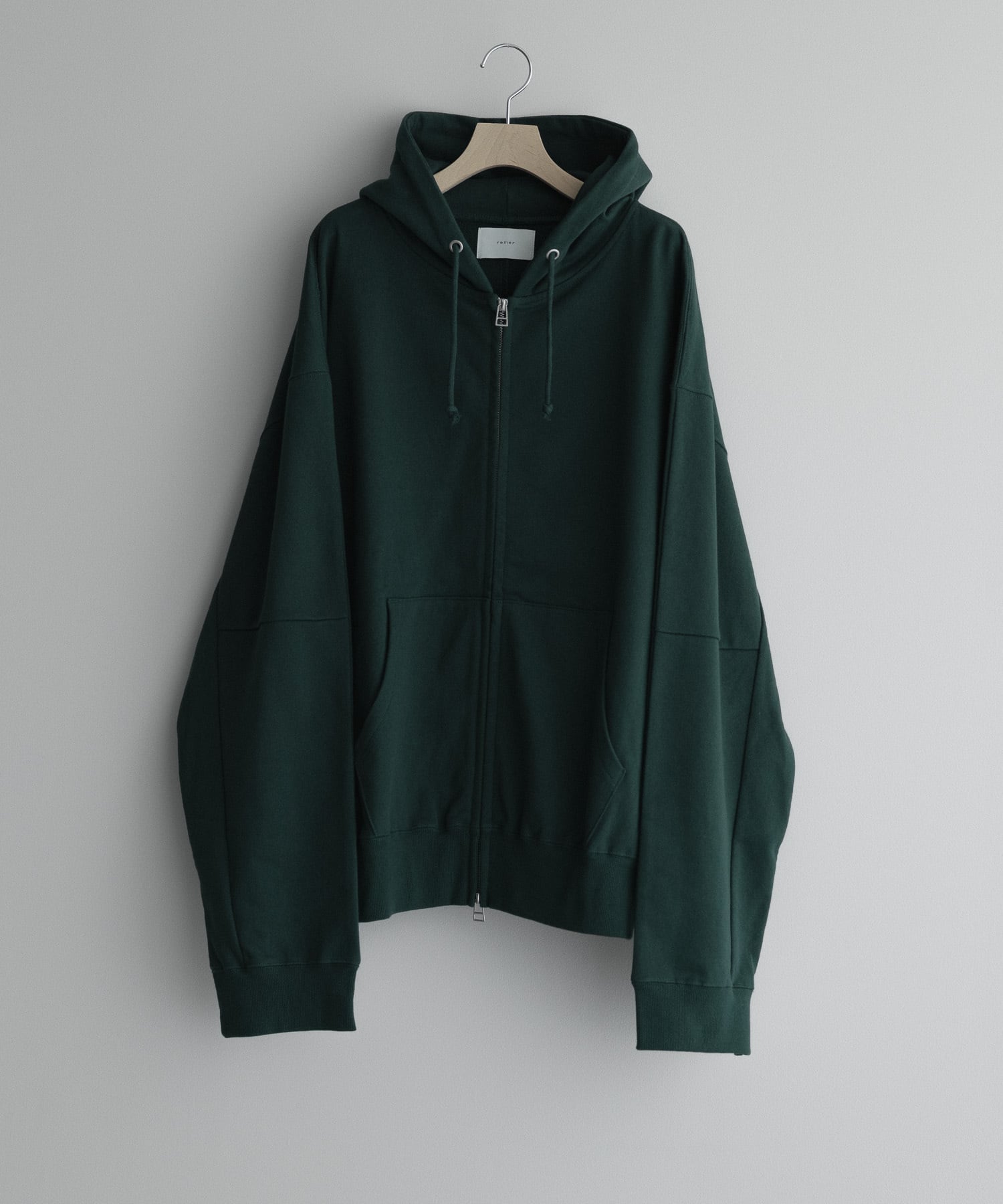 25AW Latest Zip Hoodie.Featuring a wide-sleeve design that embraces generous volume, this piece is crafted from a 400g/㎡ fleece body that balances substantial weight with comfort, creating a beautifully structured silhouette.
