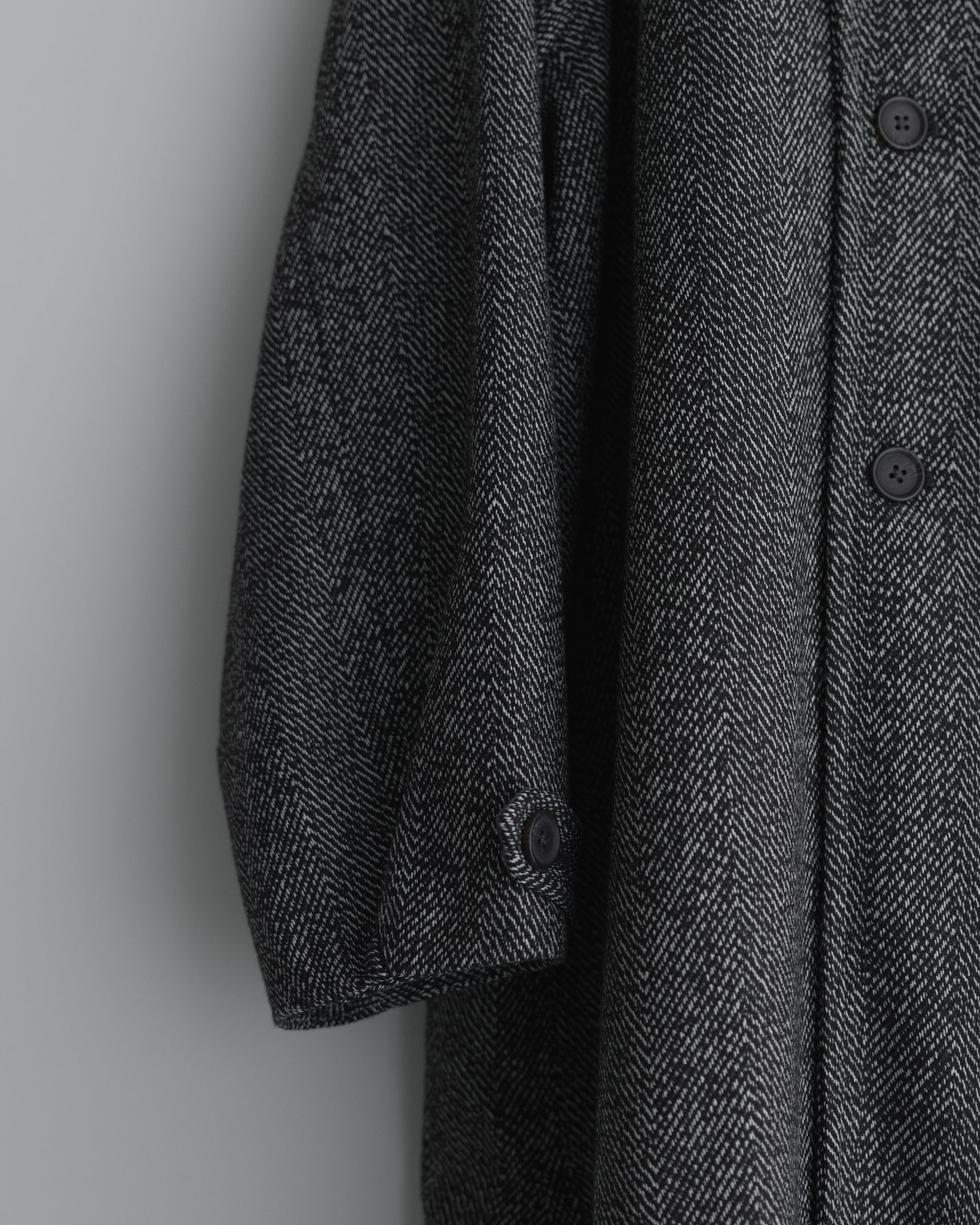 Combining the natural loft of premium wool with an elegant, fluid drape, this piece achieves a refined balance—substantial in weight yet exceptionally supple, delivering an elevated and effortless wearing experience.