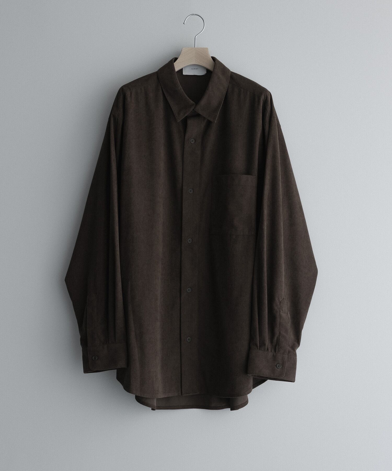An overshirt crafted from drape corduroy fabric, featuring a winter-appropriate texture and an elegant, fluid drape.
