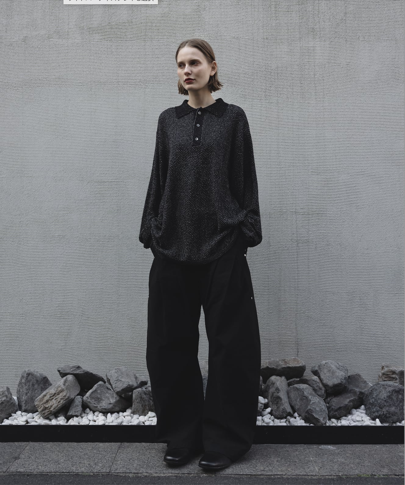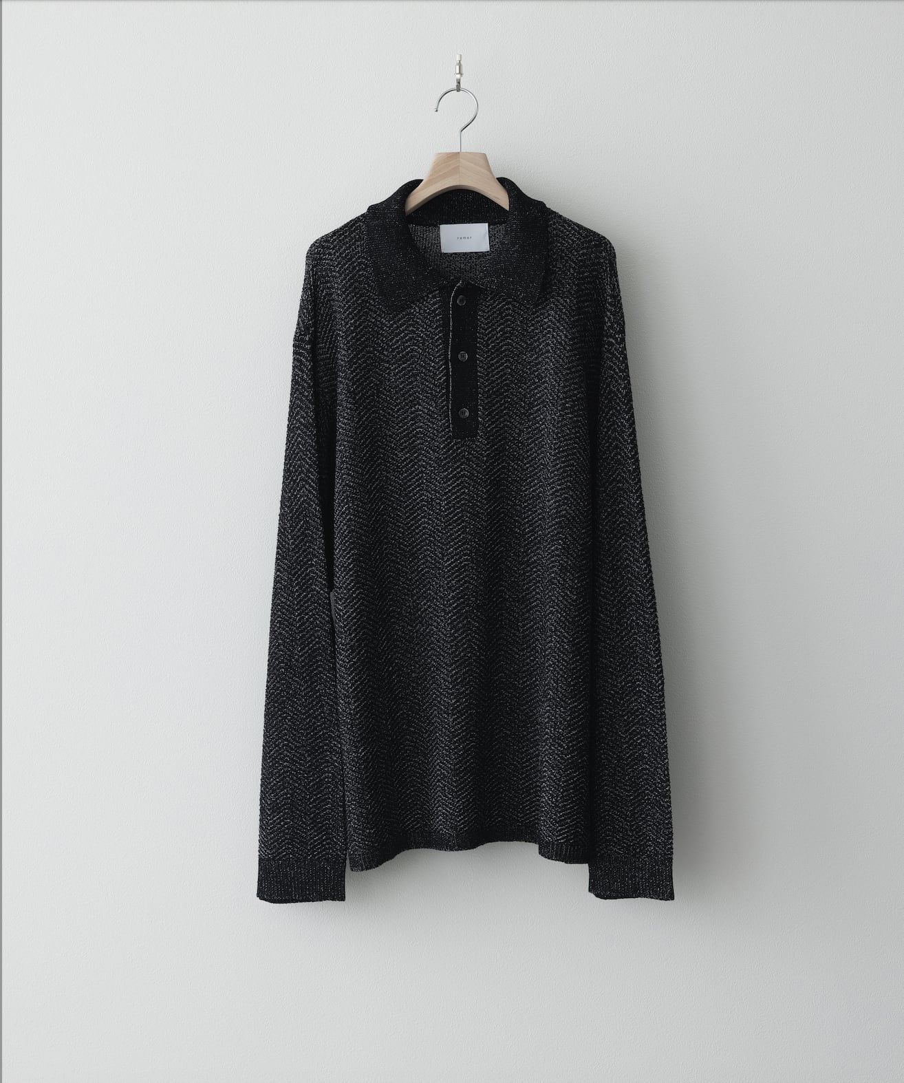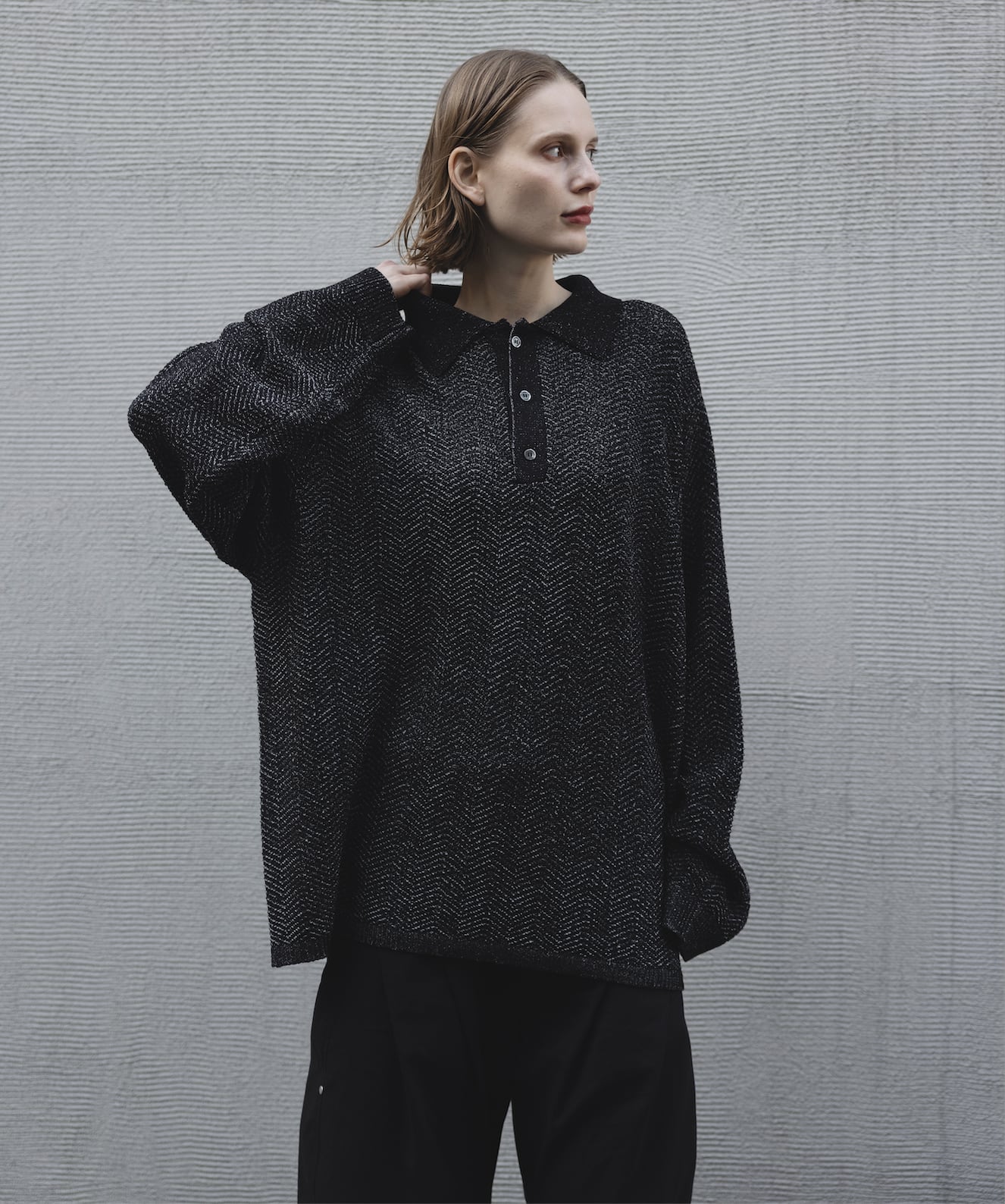 loose dual yarn knit polo shirt / black
